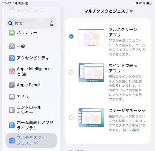 まず確認すべきは、設定画面→「マルチタスクとジェスチャ」で、「フルスクリーンアプリ」が選択されているかどうか。もしこれが選択されていなければ、「画面隅からのスワイプで○○を起動」は使えないようです。 さらに、同じ画面の下の方にある「指で隅から…