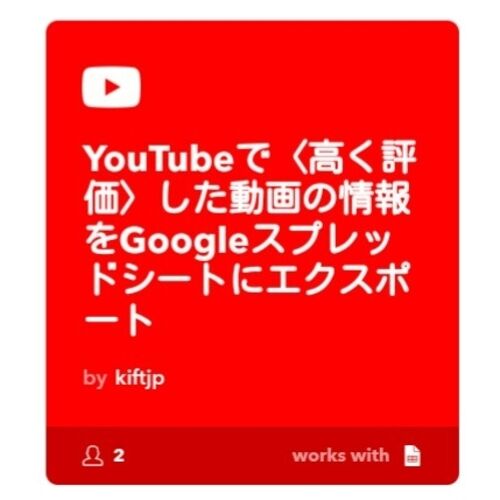 YouTubeにおける「高く評価」というのは、動画のタイトルの下などに表示されている、親指を上に立てた手の形のアイコンを押すことです。 YouTube (左下に「高く評価」のアイコン) このアイコンを押した動画の情報をGoogleスプレッドシートに自動でエクスポ…